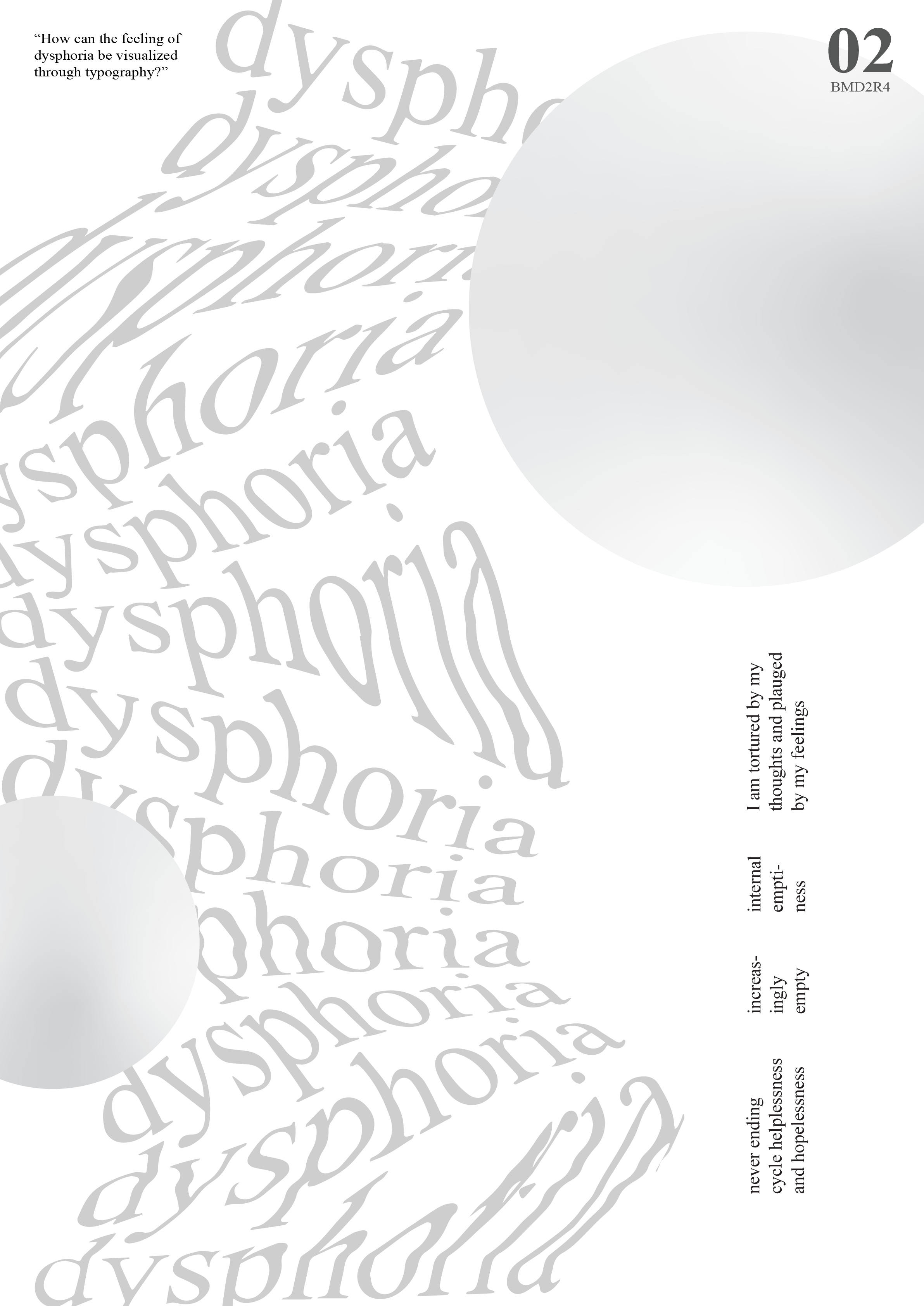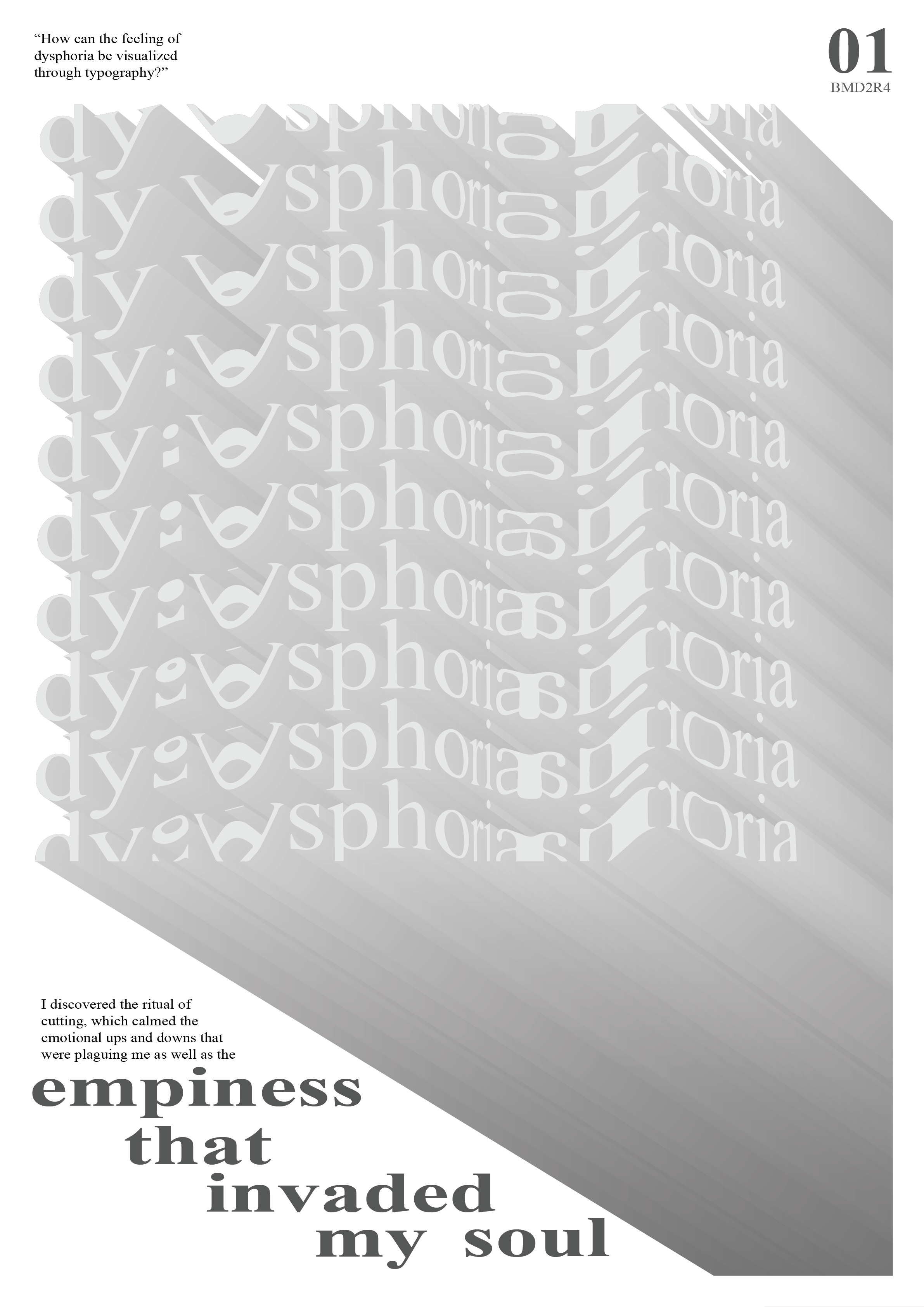 After extensive research I narrowed my field of research down to just the emotion of dysphoria. I research people recounts of what I feels like to experience chronic dysphoria and used that to inspire my designs.